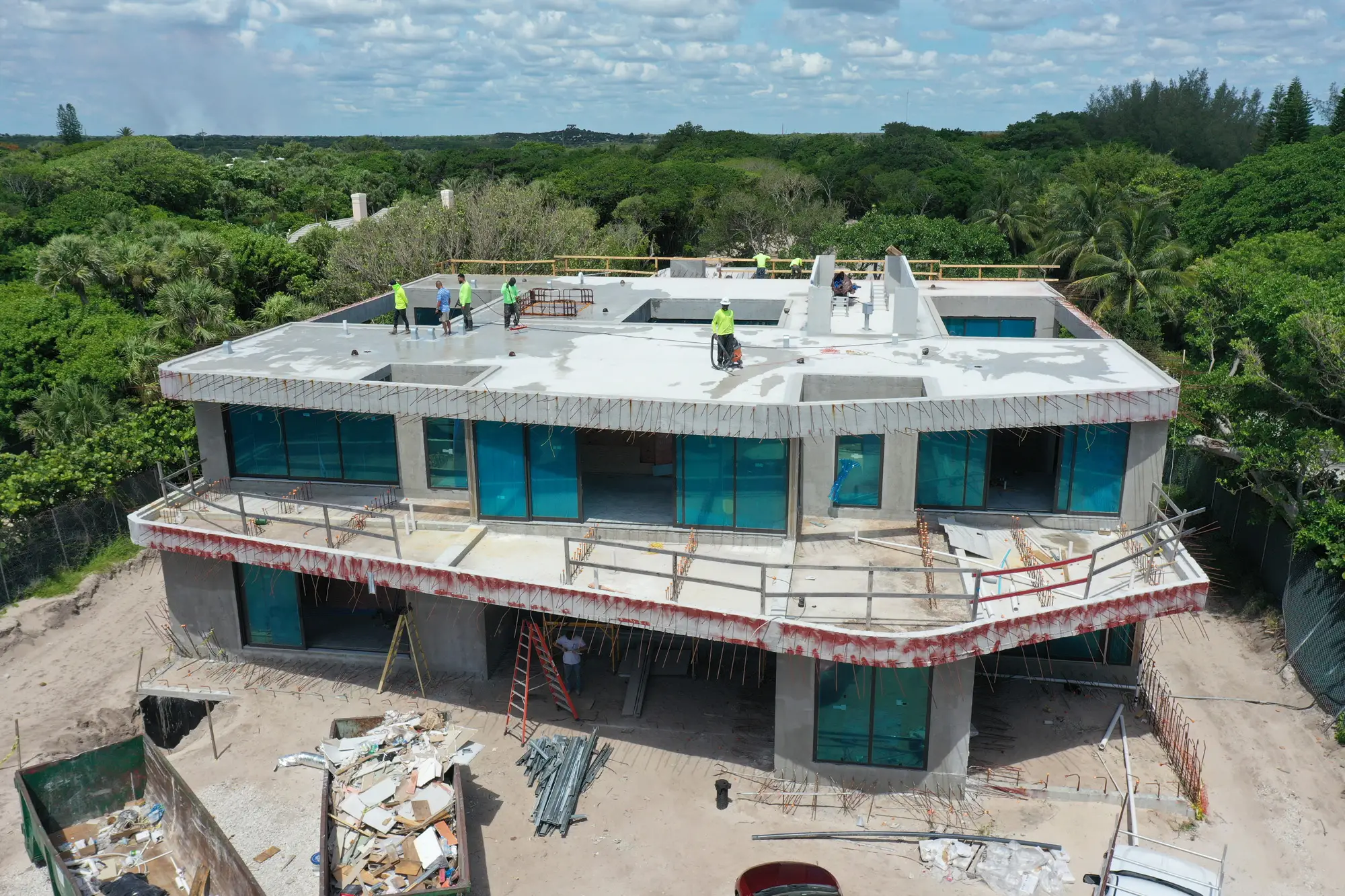 Shellco Construction delivered a stunning 14,867 square foot luxury estate on a rare 3.5-acre Jupiter Island property, demonstrating our expertise in complex waterfront construction and innovative foundation systems. The project featured an auger pile monolithic structural slab foundation with pre-cast joist floor and roof systems, engineered to meet the demanding requirements of barrier island construction.