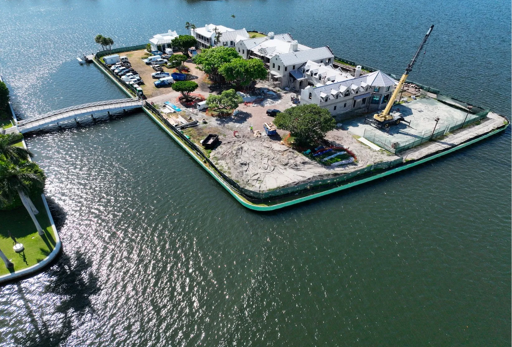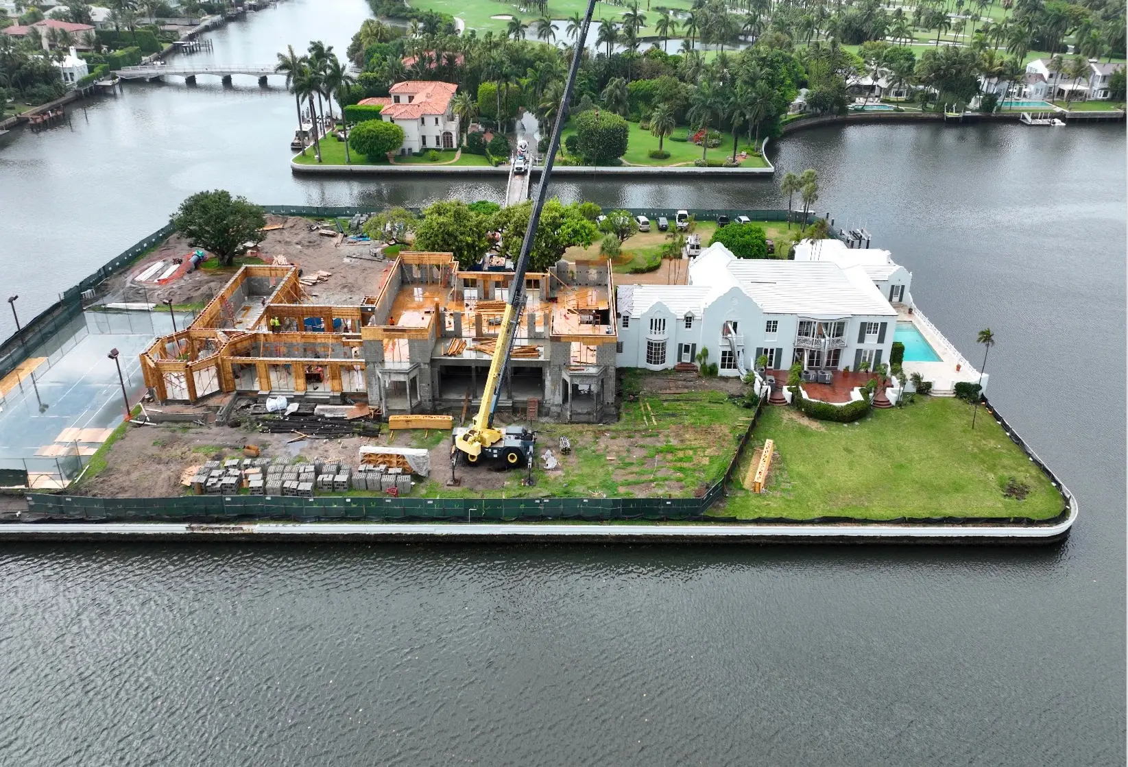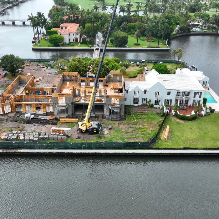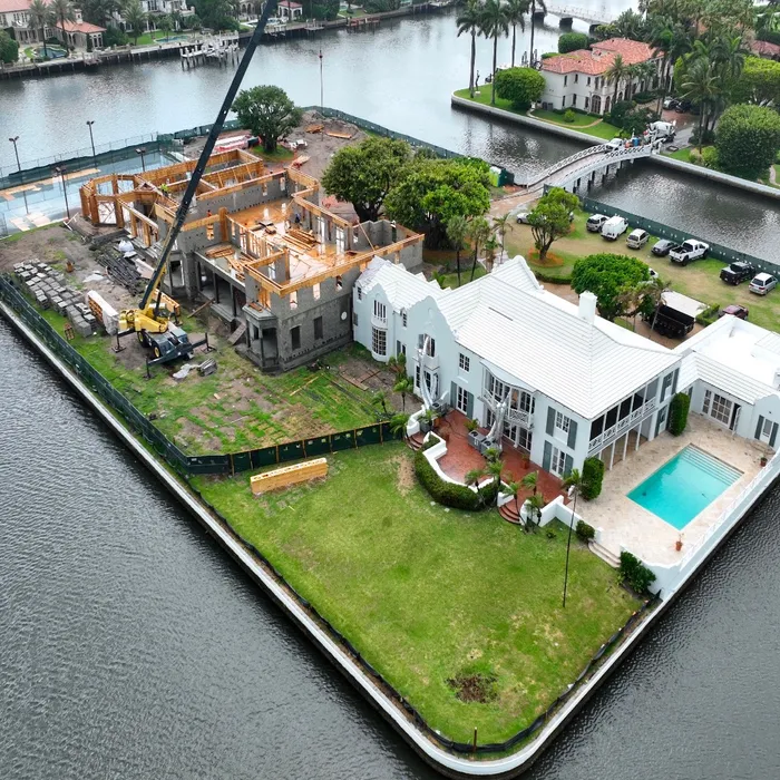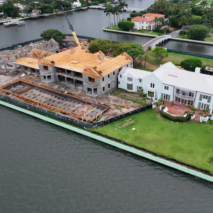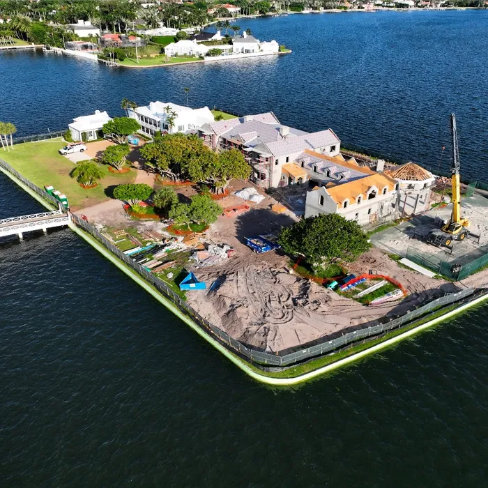 This exclusive 2.3-acre island property features the area's only private lighted tennis courts, two swimming pools, including a 98-foot lakefront infinity pool, 11 bedrooms, two full kitchens, and lake views on all sides. Construction required a specialized auger pile spread footing foundation engineered for island conditions, with all materials transported by barge due to the property's unique bridge and boat-only access. The project showcased Shellco's expertise in complex waterfront construction, seamlessly integrating modern luxury amenities with historic architecture while meeting hurricane-zone requirements.