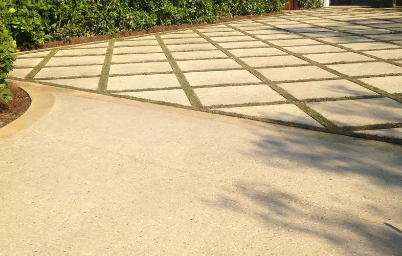 When precision geometric design meets oceanfront luxury, the result is a stunning Tabby driveway that transforms functional space into architectural artistry through advanced concrete craftsmanship and specialty finishing techniques