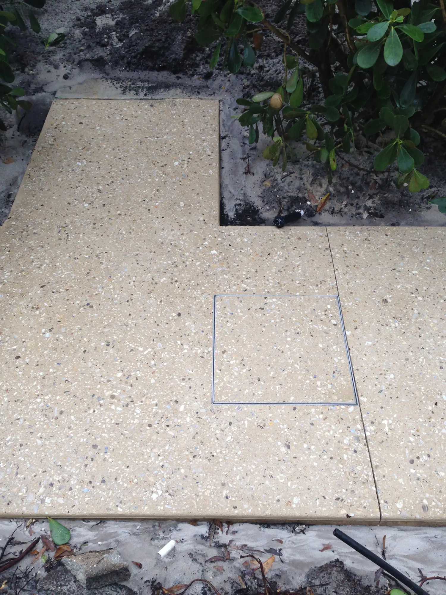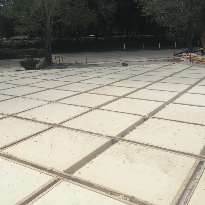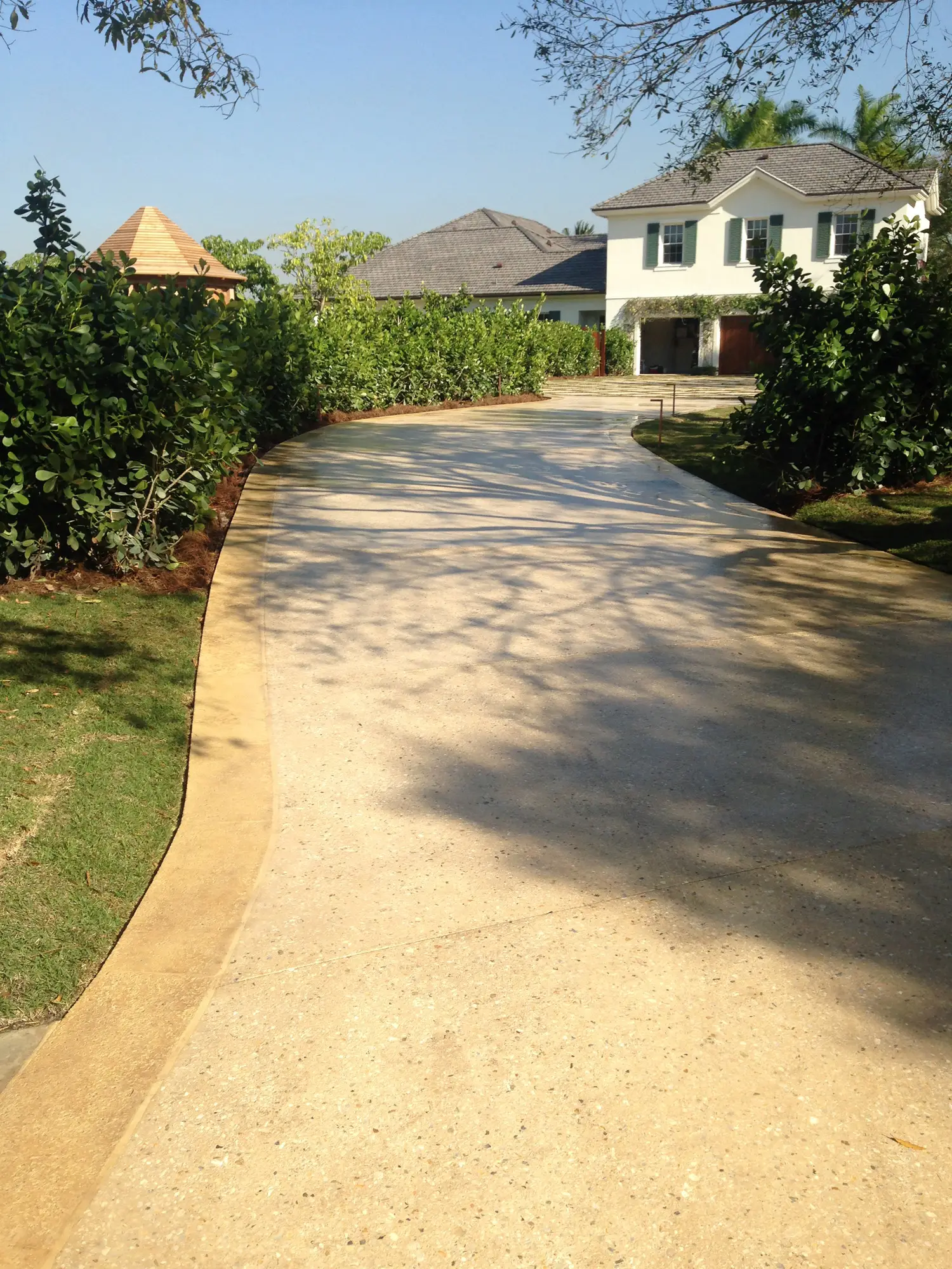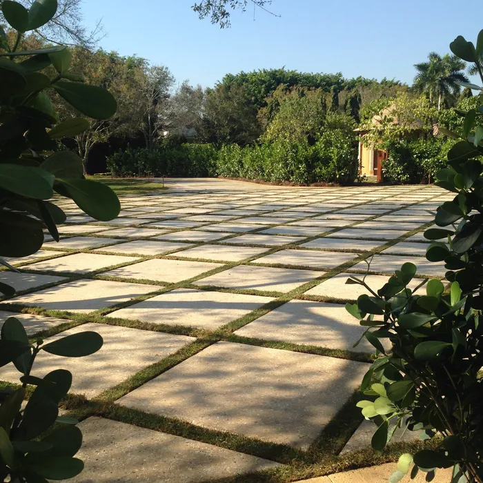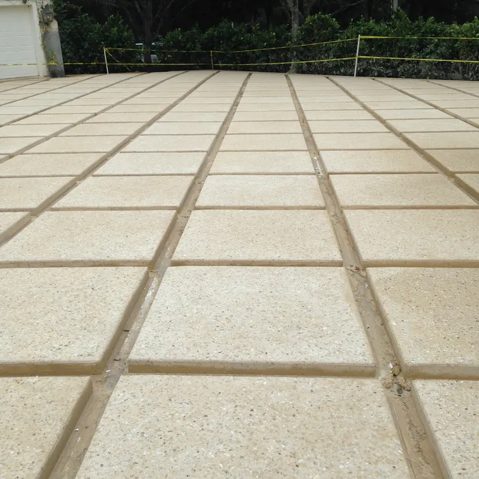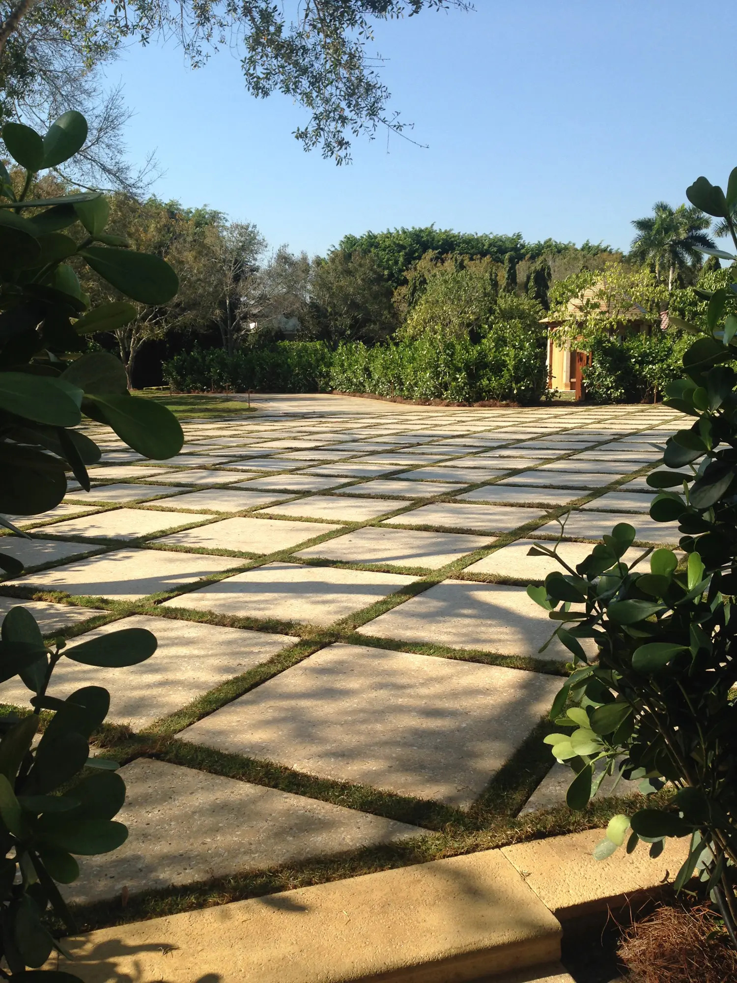 Shellco Construction delivered a sophisticated geometric grid pattern Tabby driveway for the Baldwin residence in North Palm Beach, featuring distinctive Surf Beige Tabby concrete with #3 Coquina Shell aggregate and a sandblasted finish that creates both visual impact and optimal surface texture for residential luxury applications. The project showcased advanced decorative concrete techniques through the execution of clean geometric grid patterns with integrated grass strips, requiring detailed forming and careful aggregate placement to achieve the sophisticated finish that enhances the property's contemporary residential design.