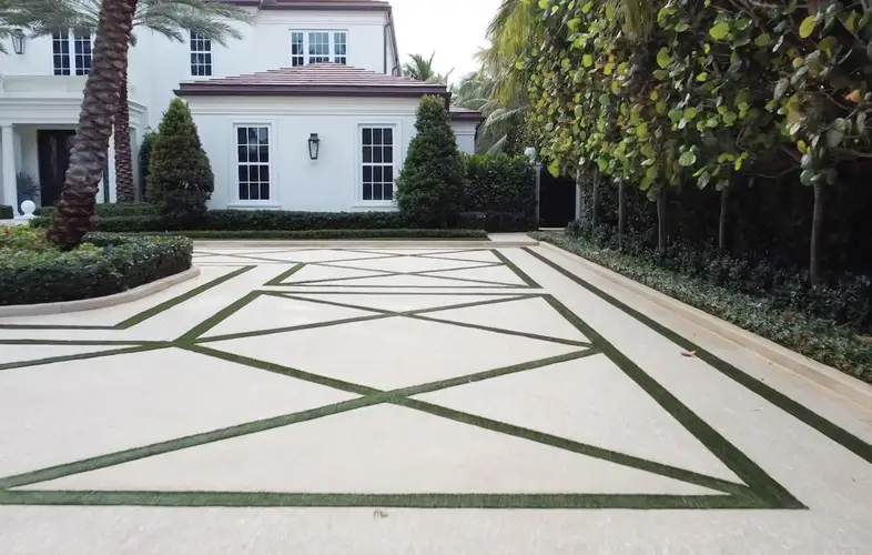 Shellco Construction delivered an exceptional 9,862 square foot diamond pattern tabby driveway for this prestigious oceanfront manor, featuring Beach Beige Tabby concrete with #3 Coquina Shell aggregate and a precision sandblasted finish that creates both stunning visual impact and optimal surface texture. The project showcased advanced decorative concrete techniques through the execution of intricate geometric diamond patterns that required precise forming, careful aggregate placement, and skilled sandblasting to achieve the sophisticated finish that complements the estate's classical architecture.